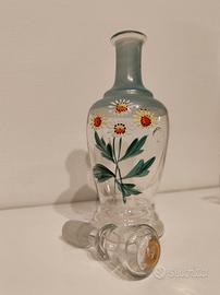 Vendo un bellissimo servizio da liquore vintage in vetro soffiato, dipinto a mano.