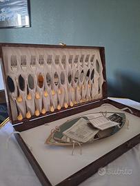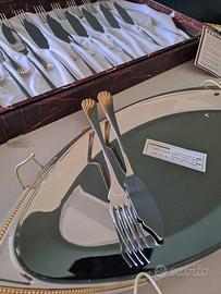 Servizio da posate da pesce acciaio e oro