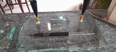 2 penne stilografiche, porta penne taglia carta e separatore fogli