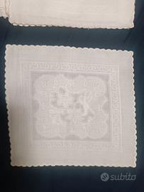 Servizio da tavola "Farnese" mercerizzato operato stereoscopico composto da una tovaglia 2,70x1,55 circa, 12 tovaglioli cm 30x30 circa, 1 tovaglia mt 1,15x1,15 circa e 12 tovaglioli cm 56x56 circa. Nuovo, mai usato. BELLISSIMO!!!