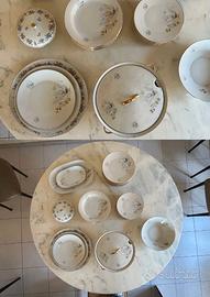 Vendo elegante servizio da tavola completo in porcellana fine con raffinata decorazione floreale e bordo in oro, in ottime condizioni, ideale per amanti dello stile classico e collezionisti.