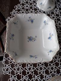 Servizio da tavola in porcellana della Czechoslovakia manifattura Haas & Czjzek, fondata nel 1792 in Boemia. Rivenditore "La Vitrum Dim. Martini Udine". Servizio da sei, più zuppiera brodo, insalatiera, portafrutta, piattino ovale