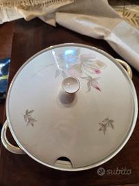 Servizio da tavola vintage in ceramica color panna marca Mitterteich Bavaria, composto da 6 piatti piani, 6 piatti cupi, 6 piattini, zuppiera, 1 piatto da portata rotondo grande ed 1 ovale.