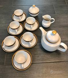 Vendo servizio da the vintage in porcellana con profili color oro e blu, in ottime condizioni. Servizio da 6 molto elegante,prodotto dalla ditta tedesca Kahla,così composto: 6 tazze 6 piattini 1 teiera 1 lattiera 1 zuccheriera Prezzo affare!!!! Non spedisco,solo ritiro a mano. Euro 23