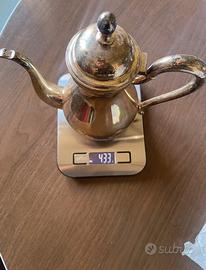 Molto bello e poi testimone di un periodo storico specifico e affascinante dell’Argenteria Italiana del 1934 che standardizzava 1 marchi moderni e 1 punzoni sottostanti lo affermano infatti I punzoni presente indicano un oggetto in argento massiccio italiano di alta qualità prodotto a Palermo Lo stile è classico, con corpi arrotondati, manici ricurvi e coperchi con pomelli. Nella parte sottostante dei singoli pezzi troviamo 3 Punzoni il primo 800 il secondo un Aquila con ali spiegate ed un terzo con una Stella il numero 95 seguito con la sigla PA concludendo: 800": Questo punzone indica il titolo minimo di argento in millesimi (80% di argento puro) permesso dalla legge italiana post-unitaria del 1872. Fino al 1934. il marchio 800 poteva essere impresso in un ovale o liberamente, come in questo caso. "L'Aquila a volo alto" (Aquila con le ali aperte): Questo è il simbolo storico e distintivo della citta di Palermo, utilizzato per secoli dagli argentieri locali come marchio di garanzia consolare, identificando la sede di produzione. "Stella con 95 PA": Questo è il punzone più specifico del produttore, o "maestro argentiere" "95": Indica un titolo di argento superiore, pari a 950 millesimi (95% di argento puro). Questo titolo, insieme all'800, era uno dei tre titoli previsti dalla legge del 1872 (950, 900 e 800). "PA": Conferma ulteriormente la provincia di Palermo. La stella: Simbolo spesso presente nei marchi di identificazione dei fabbricanti (dopo il 1934 era un requisito standard), ma la sua presenza in questo contesto conferma l'identità unica dell'artigiano specifico prima dell'uniformazione legislativa. Un servizio da tè/caffè in argento massiccio 950/1000 (con punzone 800 a garanzia del minimo legale), un pezzo di alta ebanisteria orafa palermitana con un valore storico e collezionistico evidente, legato al periodo di transizione dell'argenteria italiana antica in Argento Massiccio con un peso complessivo di oltre 1 Kg(vedi peso dei singoli pezzi in foto)
