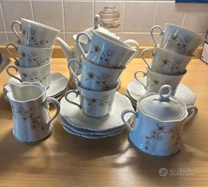 Bellissimo servizio da tè/caffè vintage in porcellana marca Schirnding Bavaria (Made in W. Germany). Composto da: •9 tazze •9 piattini •1 teiera •1 lattiera •1 zuccheriera Totale 21 pezzi. Elegante decorazione floreale, ideale per collezionisti o per uso quotidiano. Condizioni molto buone, senza crepe o rotture (solo normali segni del tempo se presenti). Perfetto per chi ama il vintage o per arredamento stile classico. 💰 Prezzo: trattabile 📦 Spedizione accurata con imballo protettivo