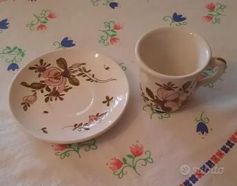 Servizio da tè completo per due, ceramica "Vecchia Lodi", include zuccheriera e lattiera. Misure vassoio: 40 x 28 Prezzo trattabile