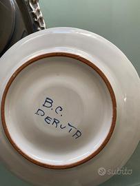 Splendido servizio da tè in vera maiolica di Deruta, dipinto interamente a mano. Si tratta del celebre modello "Arabesco Blu", caratterizzato dai raffinati intrecci floreali e dall'iconico uccellino stilizzato sulla teiera.Il set è firmato sul fondo "B.C. Deruta", a testimonianza dell'artigianalità del pezzo. Pezzo vintage autentico degli anni '70/'80, conservato con estrema cura. La qualità della ceramica e la brillantezza del blu sono tipiche della produzione artigianale di quel periodo, superiore alle imitazioni moderne." STATO DI CONSERVAZIONE:Il servizio è in condizioni impeccabili, pari al nuovo. Non presenta sbeccature, crepe o segni di usura. È sempre stato conservato in vetrina come pezzo da collezione.IL SET COMPRENDE (14 pezzi totali):1 Teiera grande con coperchio coordinato1 Zuccheriera con coperchio coordinato6 Tazze da tè grandi6 Piattini coordinati 📦 IMBALLAGGIO PROFESSIONALE E SICURO:Data la delicatezza della ceramica, garantisco un imballaggio a prova di urto. Ogni singolo pezzo verrà avvolto individualmente in abbondante pluriball a più strati e fermato con nastro adesivo. Il tutto sarà inserito in una scatola rigida con materiale di riempimento (polistirolo o carta ammortizzante) per evitare qualsiasi movimento durante il trasporto.