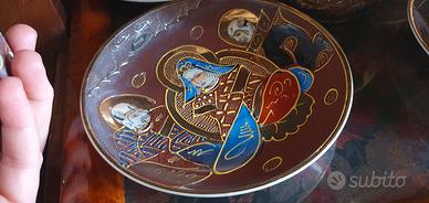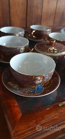Servizio da tè giapponese Satsuma dipinto a mano Geisha sul fondo 6 tazze con piattino e zuccheriera