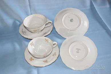 servizio da tè composto da 2 coppie di tazze e 2 coppie di piattini, manifatture diverse ceramiche Bavaria come da foto,