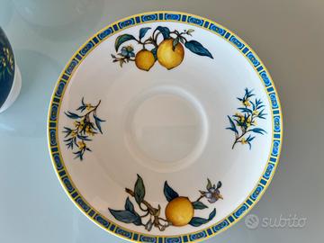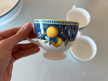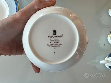 Servizio da tè con tazziene e piatto + teiere. Wedgwood – linea “Citrons” (1993) in bone china, quindi porcellana di alta qualità. Info in privato