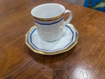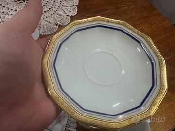 Decorazione elegante con bordo dorato inciso e linea blu cobalto, tipica della manifattura Tirschenreuth.