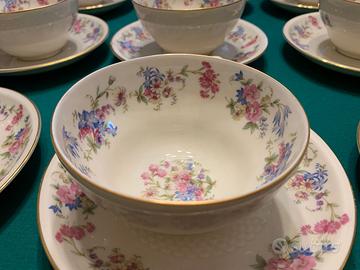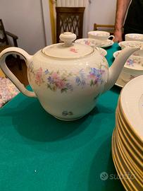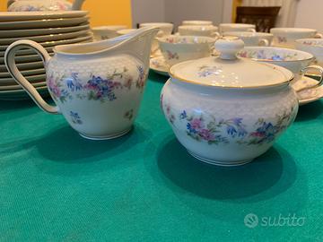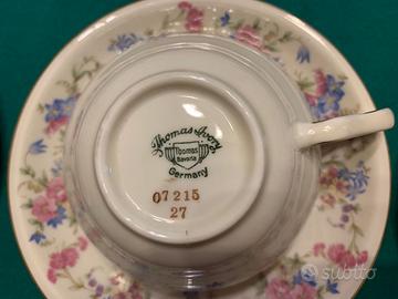 Prestigioso servizio da tè da 12 completo, in fine porcellana tedesca della Manifattura Thomas Ivory, XX secolo. Il set comprende 12 tazzine, 12 piattini, una teiera, una zuccheriera, una lattiera e 12 piattini da dolce. originale e numerati con timbri come visibile in foto. Tassativa solo consegna a mano, prezzo non trattabile.