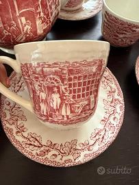 Vendo elegante servizio da tè in ceramica inglese Myott’s “Country Life”, produzione Staffordshire, Made in England (1982). 🔸 Composto da: * 1 teiera con coperchio * 5 tazze * 5 piattini * 1 porta cucchiaini 🔸 Decorazione: Motivi classici inglesi in rosso con scene di campagna, stile vintage molto ricercato. 🔸 Condizioni: Buone condizioni generali, senza rotture. Normali segni del tempo su alcuni pezzi (vedi foto). 💰 Prezzo: 60€ (trattabili) 📍 Consegna a mano