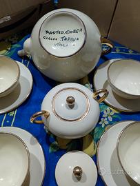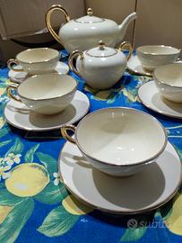 Elegantissimo servizio da te per 6 persone, porcellana colore avorio con rifiniture in oro. Anni 50/60