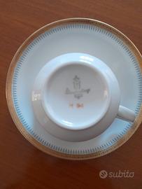 servizio da te in porcellana con profili in oro composto da 12 tazzine con piattino teiera e lattiera.