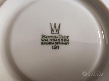 Set da thè 6 persone 9 pezzi in porcellana Bavarese Barauther Waldsassen con bordi in vero oro giallo.