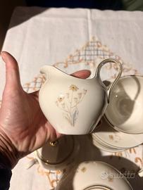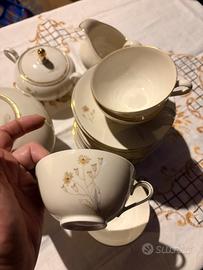 Vendo elegante servizio da tè in porcellana, originale, anni ’60–’80, decorato con dettagli in oro e motivi classici.