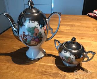 Raro servizio bavaria da the in preziosa porcellana e placato argento.