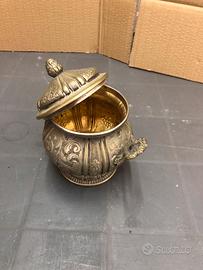 teiera, caffettiera, lattiera e zuccheriera, su un vassoio fondo specchio.
