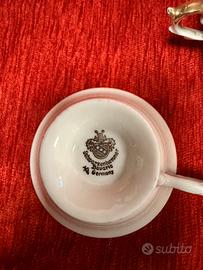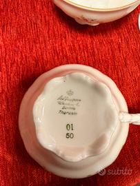 Servizio di Bavaria in porcellana bianca con dettagli oro, zuccheriera con coperchio e sei tazzine