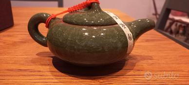 servizio da the cinese composto da teiera e da sei coppette, perfetto anche sake, colore verde scuro, completo di scatola originale