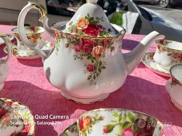 Eccelso Servizio da the' di Finissima Porcellana Inglese Royal Albert " Old Country Roses" da 6 tazze Con Piattino, Alzata, Piatti Dolce.Perfetto Stato.