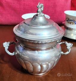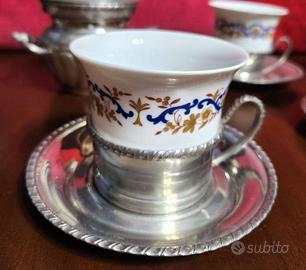 Vendo servizio da the da 6 in porcellana di Limoges originale anni 1960/70 con piattino, porta tazzina e zuccheriera in peltro al 95% e tazzina in Limoges. Il set è in ottimo stato senza sbeccature o segni di usura.30 euro NON spedisco.Si ritira a Selargius
