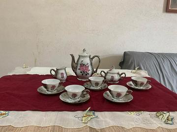 servizio da the e caffè in porcellana bavaria placcato in argento anni 50/70 con 5 tazzine, vendita anche separatamente.