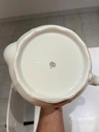 Teiera e vasetto per latte richard ginori in porcellana decorata con bordo dorato