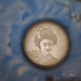 Sulle tazzine in controluce appare l'immagine di una geisha.