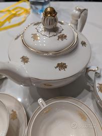 servizio da the in porcellana Leer Frisia Kostial Germany con dettagli oro. sono presenti 10 tazzine, 7 piatti, 1 lattiera, 1 zuccheriera e 1 teiera.