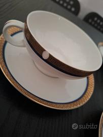 In porcellana con bordo oro zecchino con decorazioni e profilo blu.