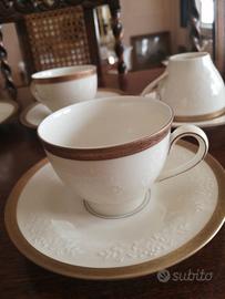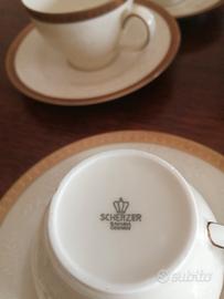 Il servizio è composto da sei tazze con piattino, teiera, lattiera e zuccheriera con coperchio. Acquistato negli anni '70 è come nuovo in quanto usato pochissimo. Il prezzo indicato è per il servizio da sei tazze ma posso vendere 12 tazze con piattino più due teiere, due lattiera e due zuccheriere perché in realtà ne furono acquistati due uguali per avere 12 coperti. (vedi foto n. 6).