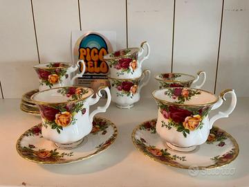 SERVIZIO DA THE IN PORCELLANA DELLA ROYAL ALBERT FINEMENTE DECORATA CON SPLENDIDE ROSE ANTICHE anni 60