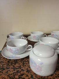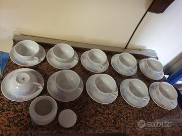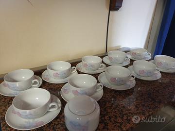 Servizio da the 10 tazzine e piattini 1 zuccheriera elegante in fine porcellana