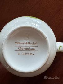 Servizio da the per otto vintage Villeroy & Boch serie Geranium anno 1983. Mai usato, ottime condizioni. Piattino diametro 16 cm, tazza diametro 8,5 cm altezza 7 cm.