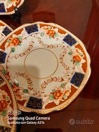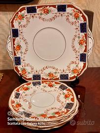 Eccelso Servizio da dolcini o torta Vintage. Di Finissima Porcellana Inglese. Composto da un Piatto con manichetti in Porcellana e sei piattini per gustare una fetta di torta. Perfetto Stato nonostante gli Anni. Perfetto e senza difetti.