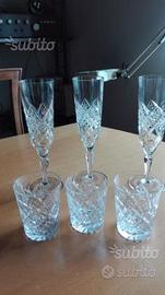 Servizio da whisky in cristallo intagliato composto da: 1)sette bicchieri alti prezzo 40 euro, 2)secchiello per il ghiaccio e mixing glass prezzo 30 euro, 3)tre flutes e tre bicchierini da liquore prezzo 20 euro, 4)due brocche e due bottiglie con tappo prezzo 80 euro. Se acquistati in blocco si vendono a150 euro.