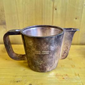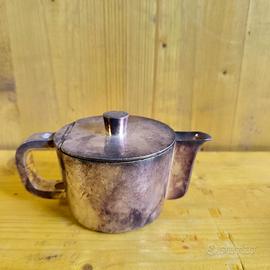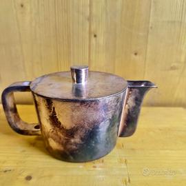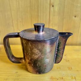 Servizio in alpacca argentata, design Gio Ponti per Krupp Milano anni '30-'40 Disegnato da Gio Ponti per l'Hotel Tofana di Cortina, questo raffinato servizio da tè/caffè in alpacca fa parte della produzione Krupp Milano, marchiata sul fondo con il logo utilizzato tra il 1938 e il 1945. Un pezzo autentico di storia del design italiano: linee sobrie, funzionali ed eleganti, che rispecchiano l'estetica razionalista dell'epoca. Presenta segni naturali del tempo, lievi ammaccature e ossidazioni che ne raccontano l'uso e la storia, senza comprometterne il fascino. Un oggetto raro, da collezione o da esporre in interni dal carattere deciso.
