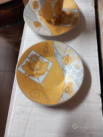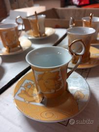 Servizio di 6 tazzine con rifiniture in oro zecchino con motivi floreali. Nuove, mai usate.