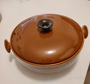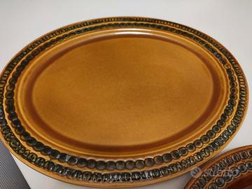 Bellissimo servizio di piatti da 6 persone color cioccolata (piatti piani, fondine e piattini frutta), grande zuppiera con coperchio e due grandi piatti da portata (ovale e tondo). Il prezzo comprende sia il servizio che i piatti portata.