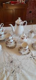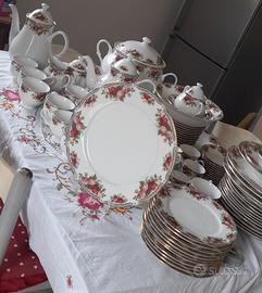 servizio di piatti finemente decorato in oro zecchino e stupende rose composto da 12 piatti fondi 12 frutta 4 piani 1 da portata tondo 1 da portata ovale 1 zuppiera 1 insalatiera 1 ciottola , servizio da the composto da caffettiera , zuccheriera ,Lattiera 11 piattini e 12 tazze ,servizio da caffè composto da caffettiera, zuccheriera, Lattiera 12 piattini e 11 tazzine, consegna a mano