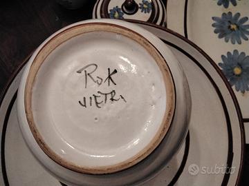Terracotta/ceramica dipinta a mano con decorazione floreale (luminosa e piacevole), prodotta a Vietri (Salerno) a metà degli anni '70 e marchiata " Rok Vietri".