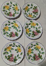 Ottimo affare : servizio di piatti di ceramica di castelli, realizzati e dipinti interamente a mano, Nuovo mai usato, realizzati da uno dei migliori artisti di castelli L. Pardi.. è composto da 6 piatti piani diametro 23,5 - 6 piatti fondi diametro 23,5 - 6 piatti piani per pizza o sottopiatti diametro 30 più uno da portata, un alzata per torta diametro 30, due contenitori, un piattino con cestino formaggiera, un poggiamestolo. Molto particolare, come foto.