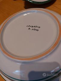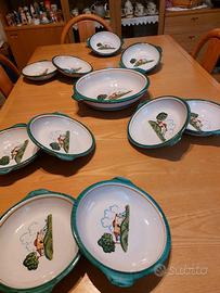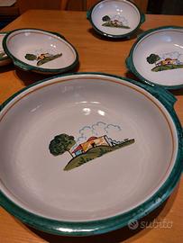 Nuovo servizio di piatti di ceramica vietrese composto da 12 piatti e una zuppiera interamente dipinti a mano con i tipici colori delle maioliche vietresi