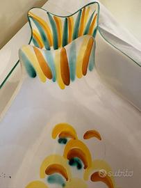 Servizio di piatti a forma di pesce in ceramica artistica di Caltagirone decorata a mano marchio CEAR.