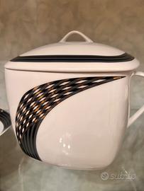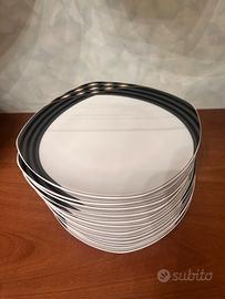 Design moderno bianco con decorazione nera, adatto sia per uso quotidiano che per tavole eleganti.