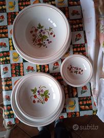 Vendo servizio di piatti per 12 persone: fondine, piatti piani grandi, piatti piani piccoli, piatto grande per antipasti, ciotoline da macedonia, ciotola per insalata. Calici per dessert 12 e 9 flute+ una brocca per l' acqua. Forchette, cucchiaini 2 misure, cucchiai, coltelli. Prezzo trattabile