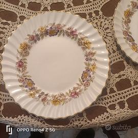 Servizio piatti di ottima fattura in ottimo stato. Made in England Royale Doulton Bone China. MayFair H.4897. 24 piani, 12 fondi, 12 piatti frutta, più diversi piatti da portata e zuppiere.